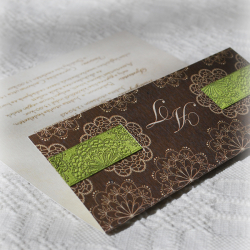 Meghívó - barna-zöld motívumos