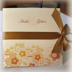 Meghívó - aranybarna-virágos